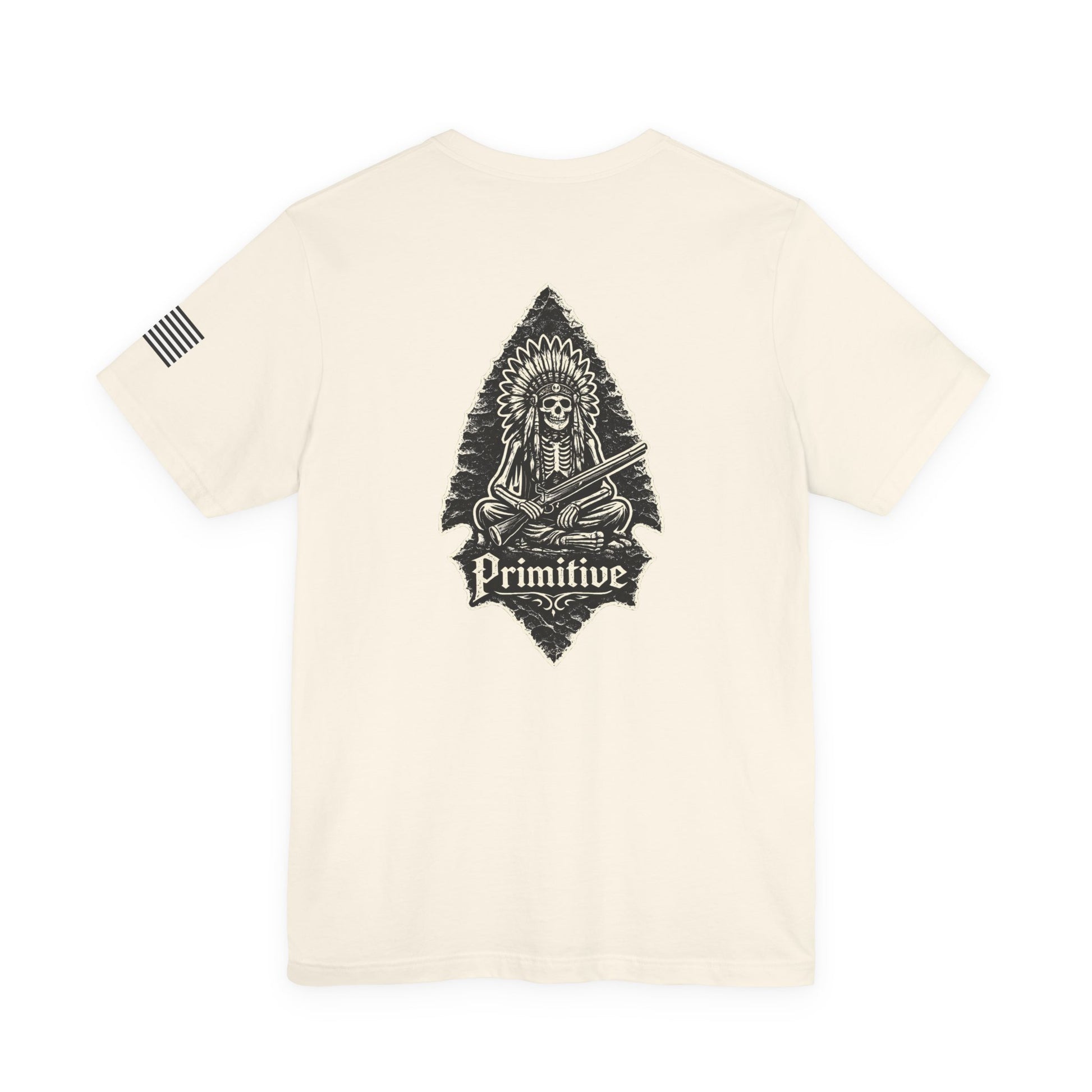 The Primitive Tee is a company favorite, featuring a flag on the left sleeve and a native american skeleton on an arrowhead!